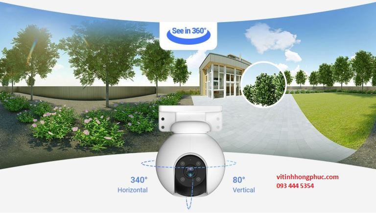Camera Quan Sát IP Wifi Ezviz H8 2k 3MP là dòng camera Wi-Fi PTZ ngoài trời với góc nhìn xoay ngang quan sát toàn cảnh 360°, cung cấp phạm vi phủ mở rộng tầm nhìn với góc quay lên trên là 340° ngang, 105° theo chiều dọc và xoay dọc 15°.