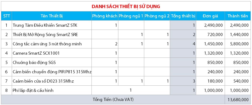 Bảng giá và giải pháp này được kiến nghị dùng cho căn hộ gồm 1 phòng khách và 2 phòng ngủ. Nếu Quý Khách Hàng có nhu cầu lắp đặt hoặc cần tư vấn khác thì hãy liên hệ ngay với chúng tôi để được tư vấn và khảo sát hoàn toàn miễn phí.