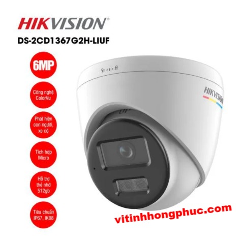 Camera IP bán cầu Hikvision DS-2CD1367G2H-LIUF thiết kế đẹp, chắc chắn, hình ảnh siêu nét 6.0mp ColorVu, chất lượng cao.