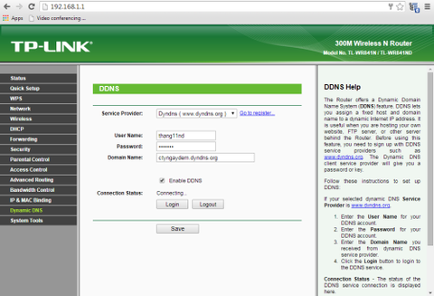 – Để xem qua mạng internet được đầu tiên là bạn phải có một hostname bằng cách tạo trên http://dyn.com/ ( mình tạo tên hostname là hostname.dyndns.org)